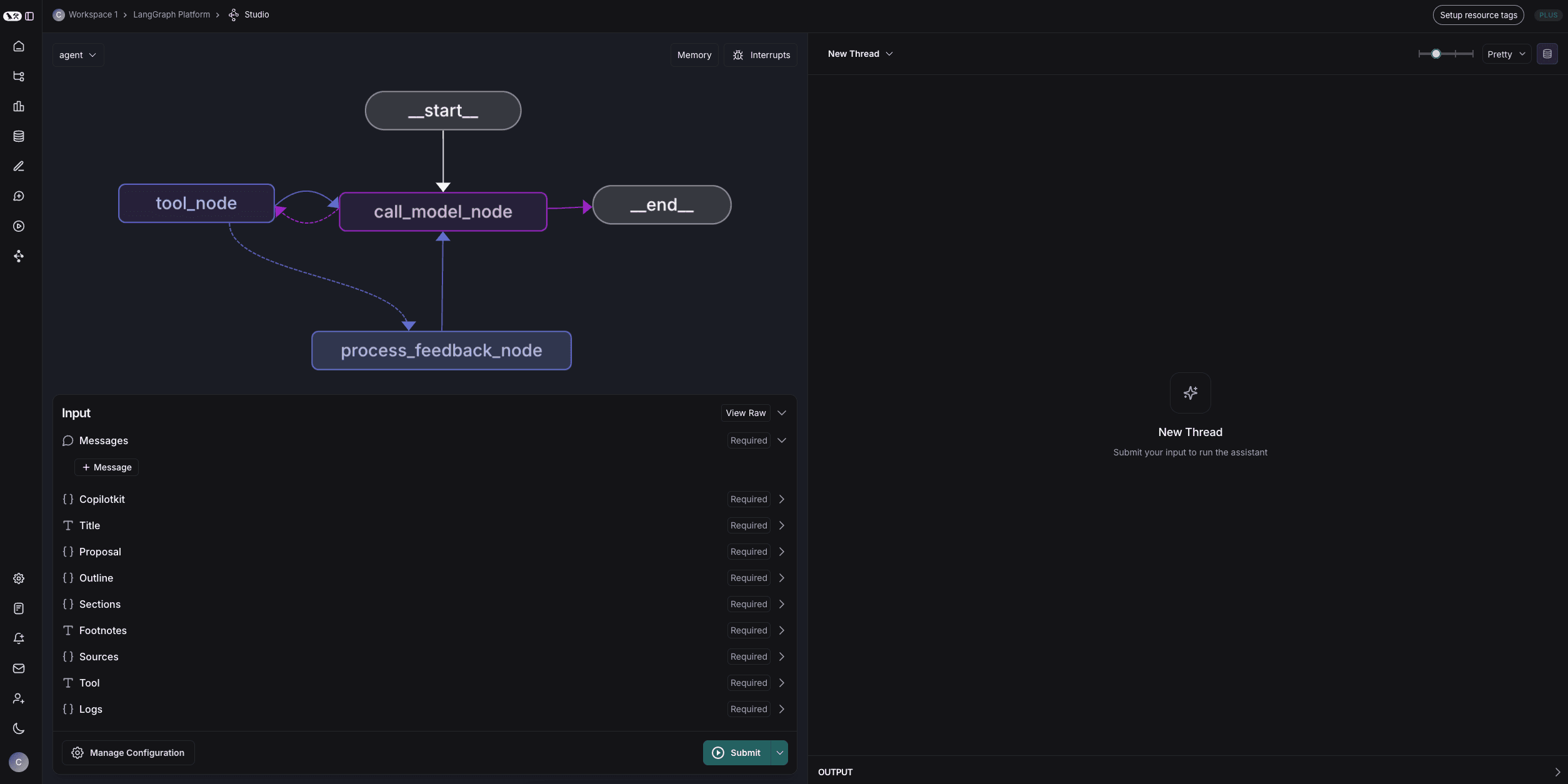 routefunction. - Interrupts: Interrupts are a way to allow for a user to work along side the agent and review its decisions. In this case, we have an interrupt after the human node which blocks the agent from proceeding until the user provides feedback.